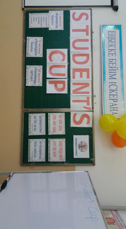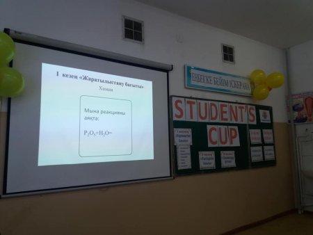 N63 негізгі орта мектебінде шығармашылық топ мүшелерінің ұйымдастыруымен "STUDENT'S CUP" сайыс алаңын өткізді. Сайыс дарынды, қабілетті оқушылардың психомоторлық, интеллектуалдық, академиялық, шығармашылық және әлеуметтік қабілеттерін дамыту. Бұл сайыстың ерекшелігі оқушылар 8-команда болып бөлініп әр командада 6,7,8,9-сынып оқушыларының дарынды, қабілетті оқушылары жиналып қарама-қарсы топпен сайысады. Сайыс III турдан тұрады. 1-ші "Жаратылыстану" пәндерінен сұрақ. 2-ші тур "Үштілділік". 3-ші тур "Танымыңды арттыр" Сайыс жыл соңына дейін жалғасады.Айына екі рет өткізіледі. Шығармашылық топ мүшелері математика пән мұғалімі З.Оразкулова, бастауыш сынып мұғалімі Р.Байысбаева және мектебіміздің жас маманы Т.Расулов ұстаздарға үлкен алғыс!!! Педагог тарапынан дарынды, қабілетті оқушылардың, бала бойындағы белгілі бір қабілеттің жарқын көрінісі ой-өріс деңгейінің жалпы дамуымен, ғылымның, арнайы бір саласын дамытудағы рөлі зор.