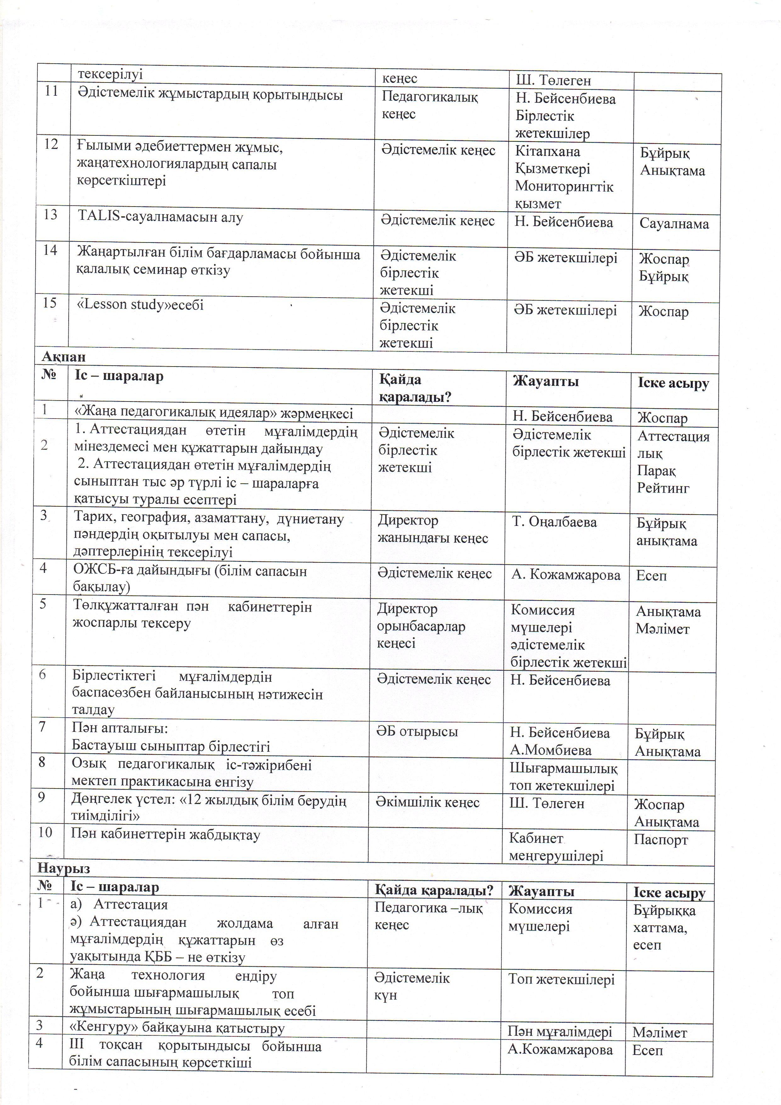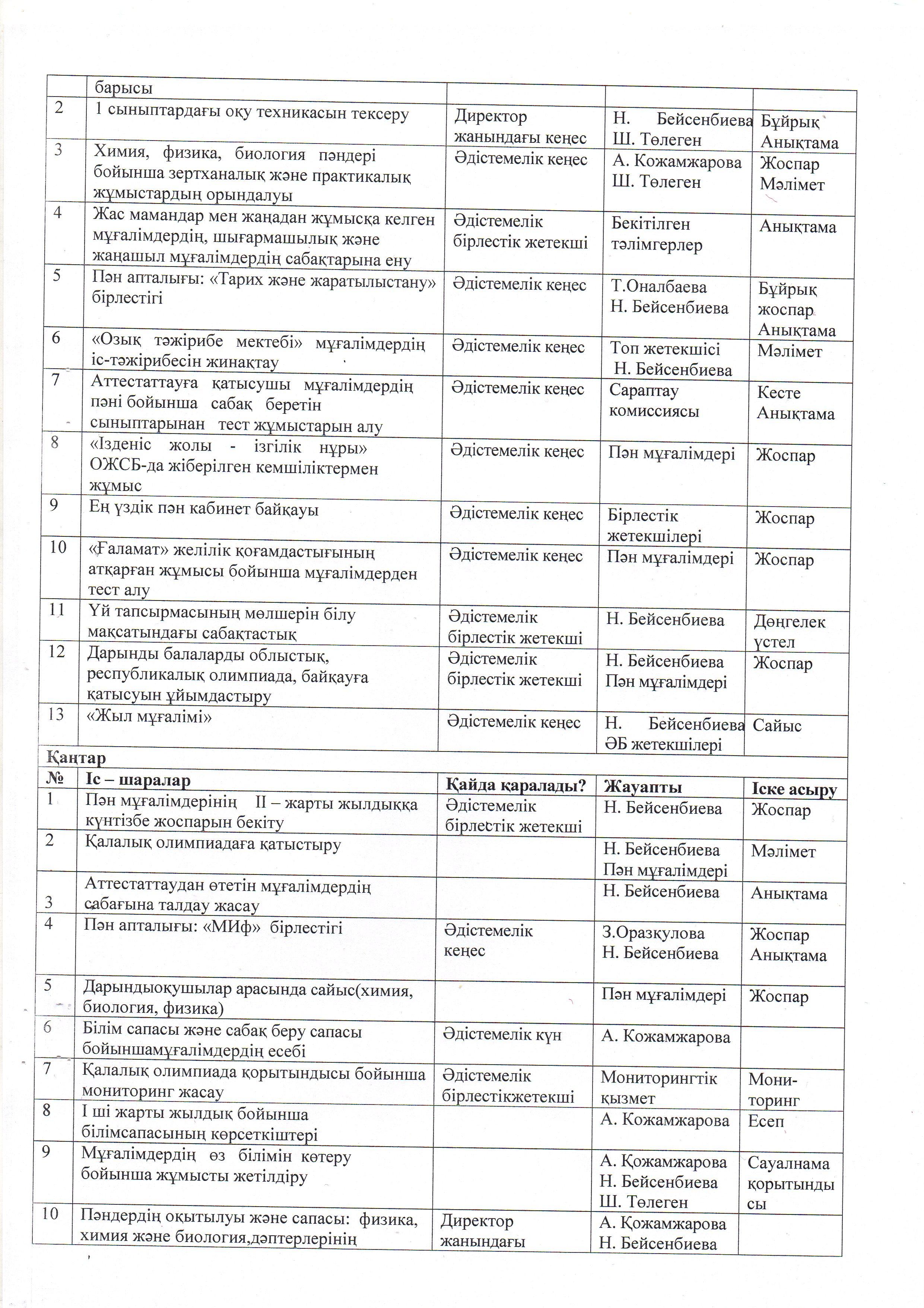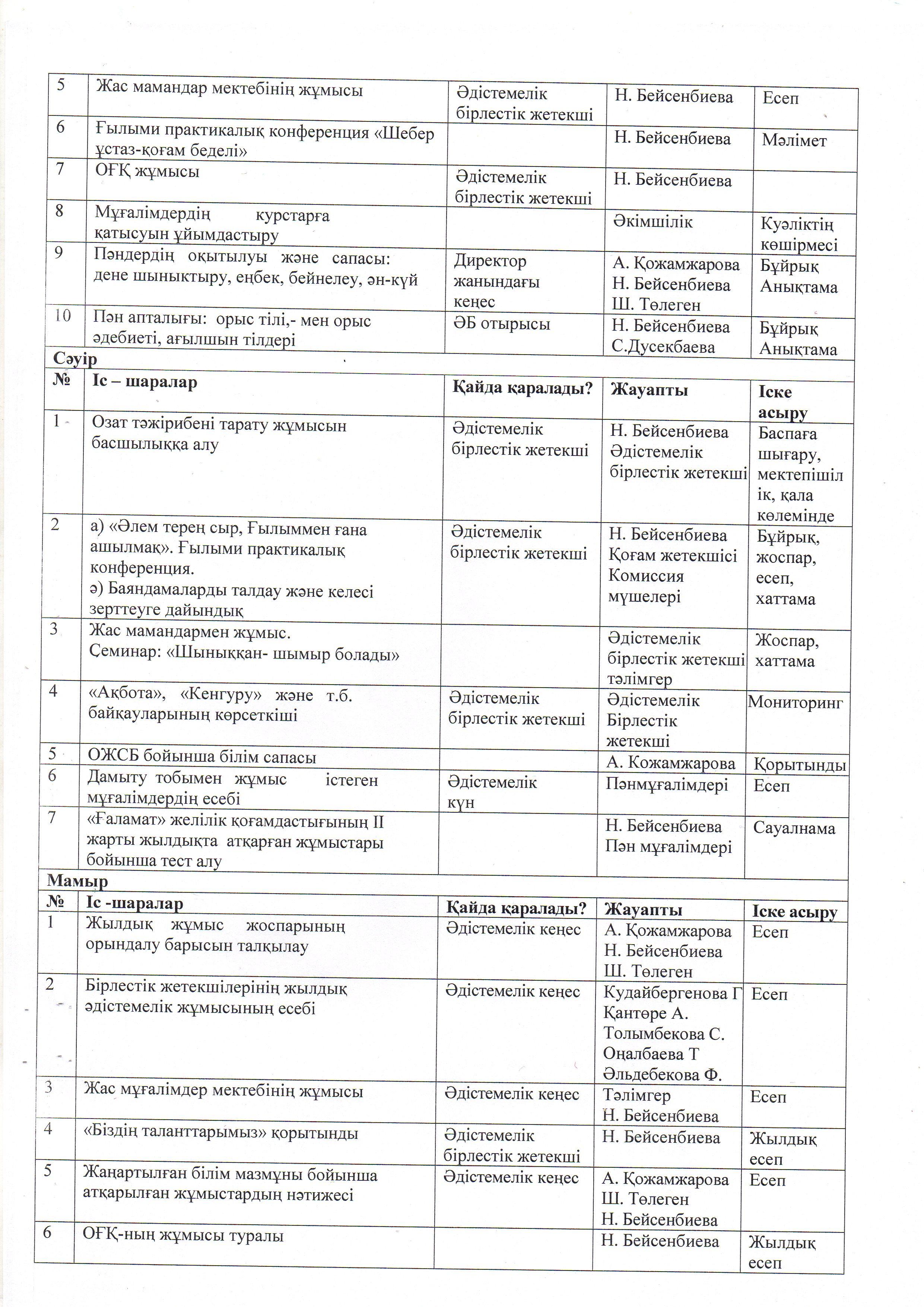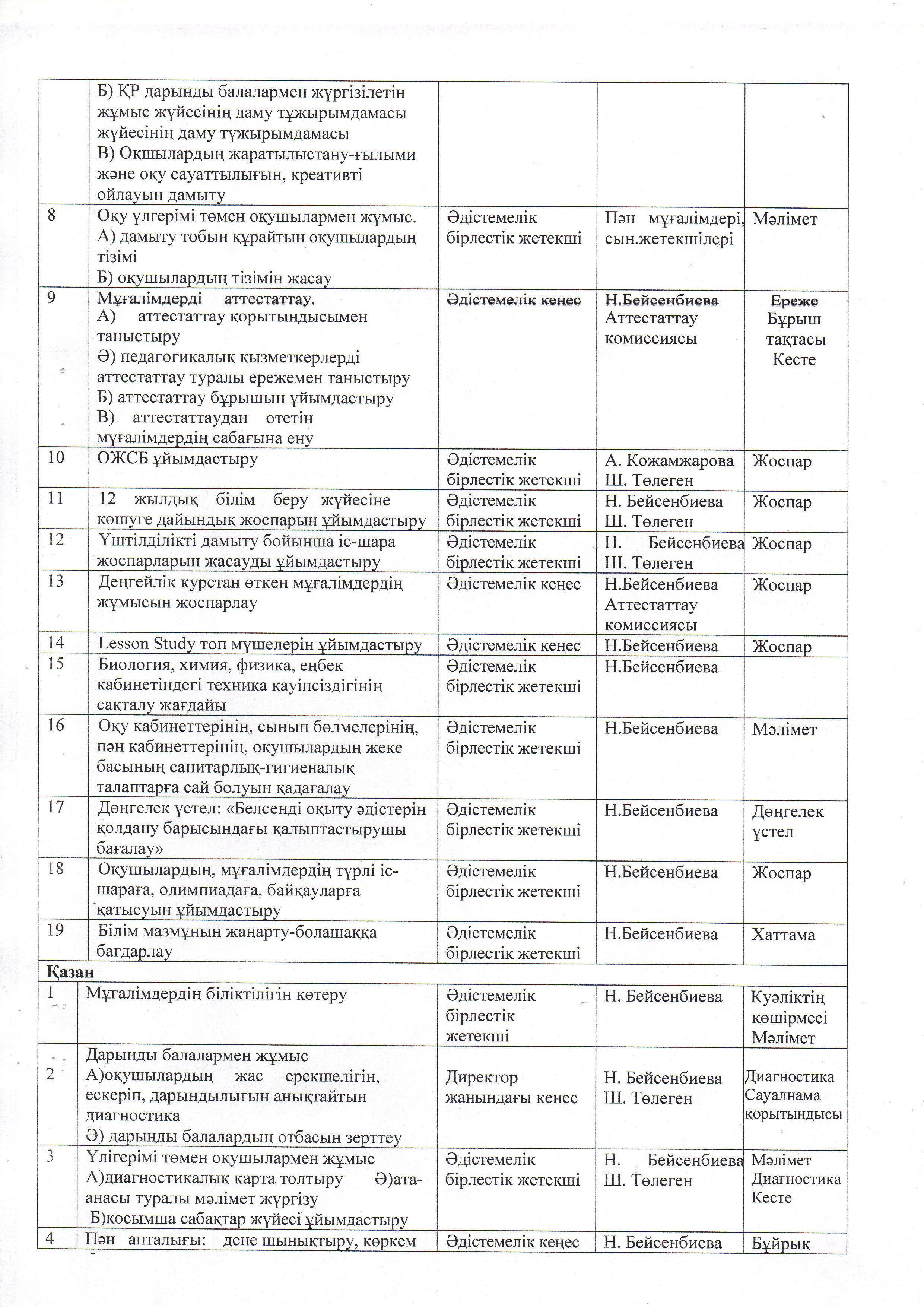 ӘДІСТЕМЕ ЖҰМЫСЫНЫҢ ЖЫЛДЫҚ ЖОСПАРЫ. 2021 - 2022 ОҚУ ЖЫЛЫ