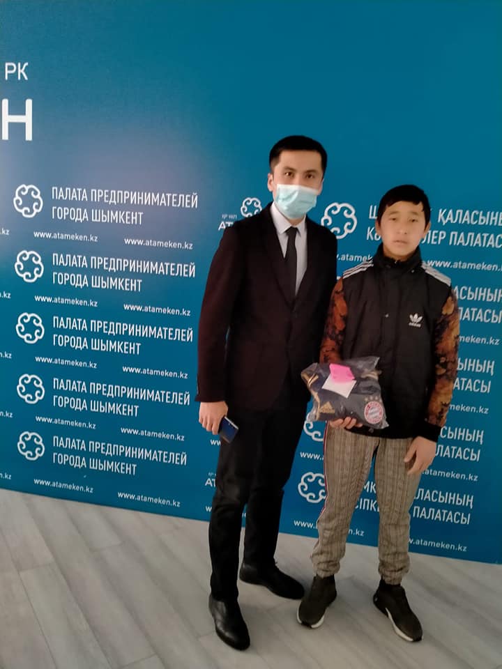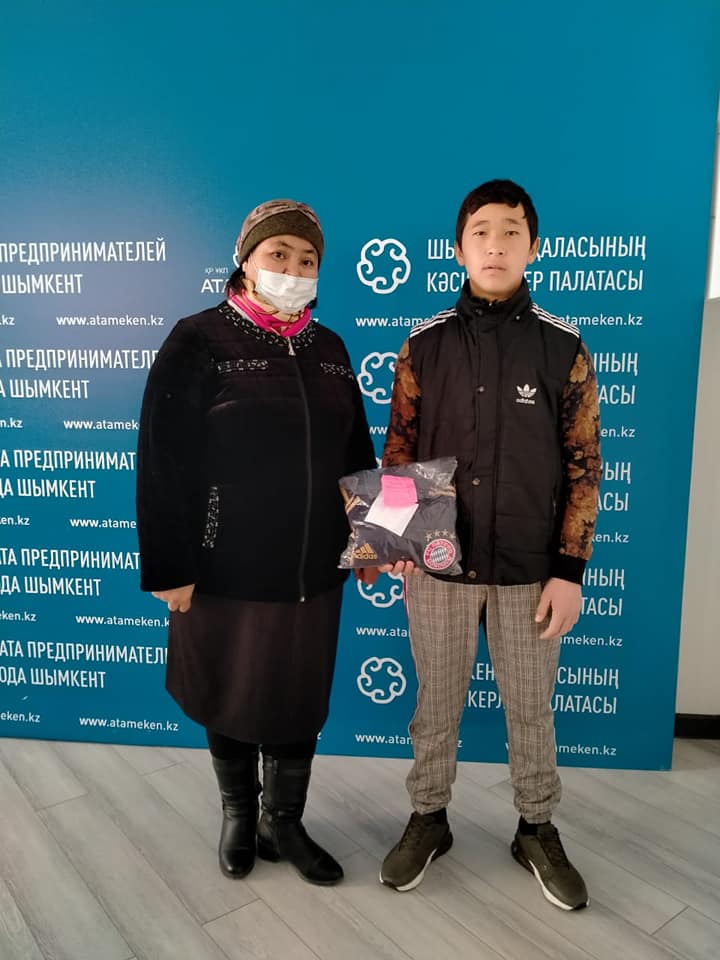 "Aidyn Nury қайырымдылық қоры" Шымкент қаласы білім басқармасына қарасты №63 жалпы орта мектебінің үйден оқытылатын 9 "а" сынып оқушысы Бәдеш Назарбекті спорттық киіммен қамтамасыз етті.