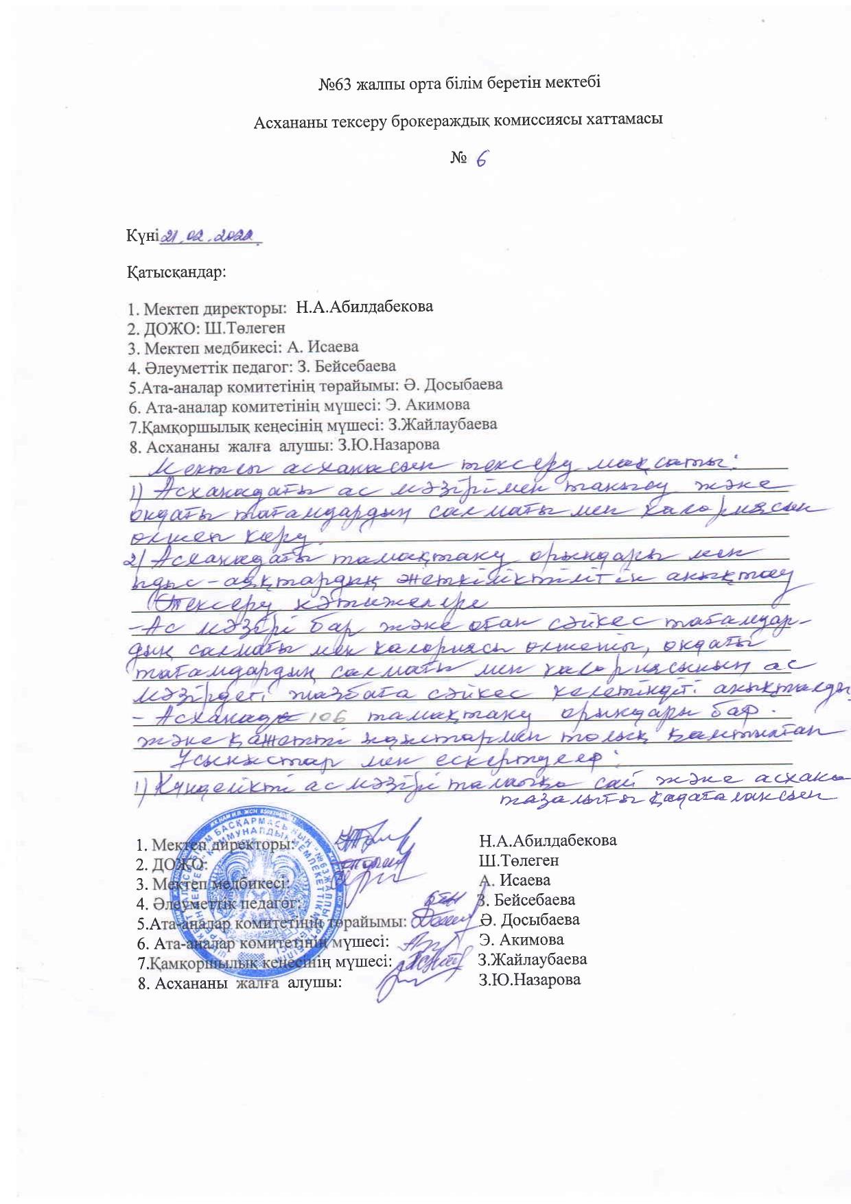 Асхананы тексеру брокеражды комиссиясы хаттамасы
