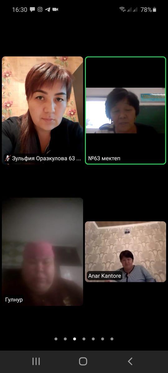Шымкент қаласы білім басқармасына қарасты №63 жалпы орта мектебінде 17 қыркүйек 2020 жылы сағат 16:00-де Қазақстан Республикасының Білім және Ғылым министрлігінің 14 қыркүйек 2020 жылғы №18-2/472 хатын негізге ала отырып, "Қашықтықтан оқыту кезінде балаға қалай көмектесуге болады? " атты бірыңғай жалпы республикалық ата-аналар жиналысы болып өтті. ZOOM- қосымшасында өтілген жиналысқа ата-аналар және сынып жетекшілер, мұғалімдер қатысты.