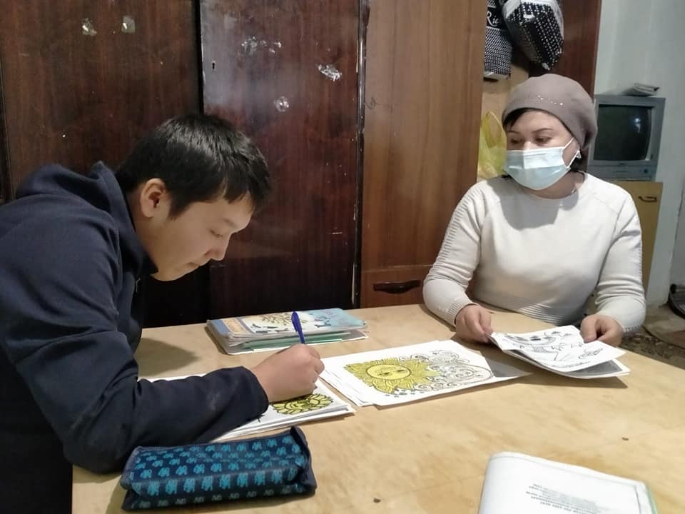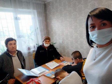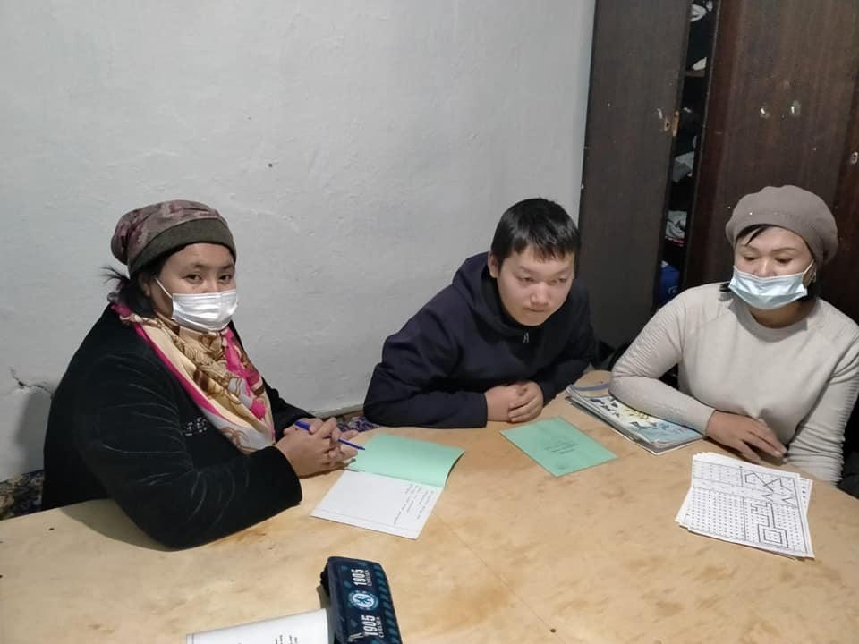 Шымкент қаласы білім басқармасына қарасты №63 жалпы білім беретін мектебінде мүгедек және денсаулығы жарамсыз үйде оқытылатын оқушыларды әлеуметтік педагогтар оқушының ата-анасымен, мектеп педагог-психологімен және пән мұғалімдері оқушының отбасымен танысып, оқушының үйін зерттеу актісін жасап, өзіндік арнайы бөлме бар немесе жоқтығын анықтап, педагог-психологтар ата-анасымен бірлесе оқушының мінез-құлқын, хал-ахуалын анықтап және байқап оқушының ата-анасымен сөйлесіп, сауалнама алып және пән мұғалімдерінің тұрақты түрде баруын бақылауға алды. Оқушының бос уақытта немен айналысатынын, қалай және кіммен өткізетіндігін сараптама жасады.